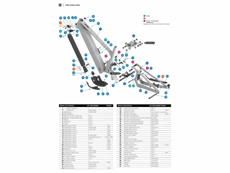Note importante : Liste non exhaustive, veuillez vous référer aux manuels de pièces détachées Mondraker.